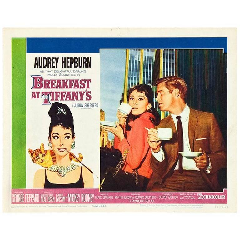 Description. Breakfast at Tiffany’s (1961) Poster, US. Artist: Robert E. McGinnis (b. 1926) Unframed: 41 x 27 in. (104 x 69 cm) Robert E. McGinnis designed this iconic poster for Breakfast at Tiffany’s, which is one of the most sought-after film posters of the 60s. This film was directed by Blake Edwards, and stars Audrey Hepburn and George.. Vintage Movie Poster “Breakfast at Tiffanys” 1961 Paramount Pictures 17″ x 12″. Pre-Owned. $99.99. dealgiantllc (1,088) 99.6%. or Best Offer. Free shipping. Classic Breakfast at Tiffany’s Audrey Hepburn Vintage Movie Poster. Brand New. $7.99 to $15.99.
